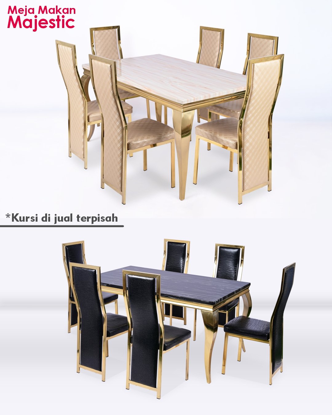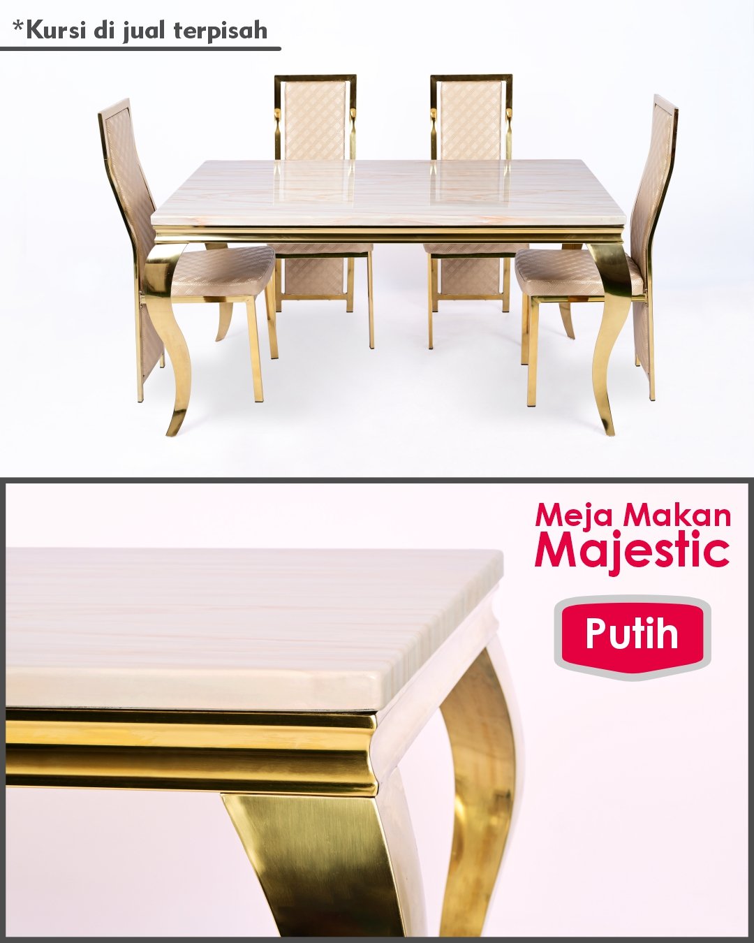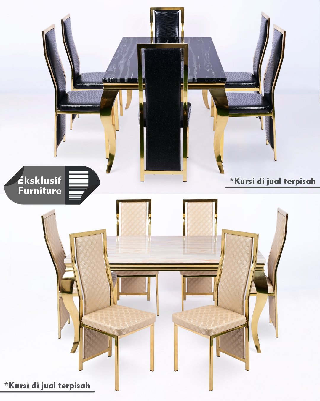 Desain Kaki Lengkung Estetik: Kaki meja dengan desain curvy berwarna emas memberikan sentuhan gaya klasik yang tetap relevan dengan interior modern.
