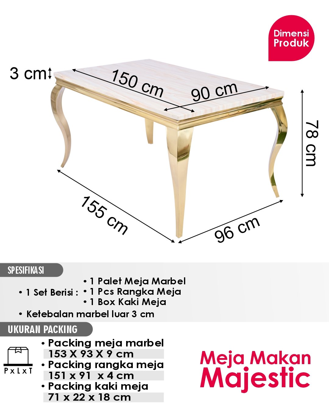 | Isi Paket (1 Set) | 1 Palet Meja Marmer, 1 Pcs Rangka, 1 Box Kaki Meja |