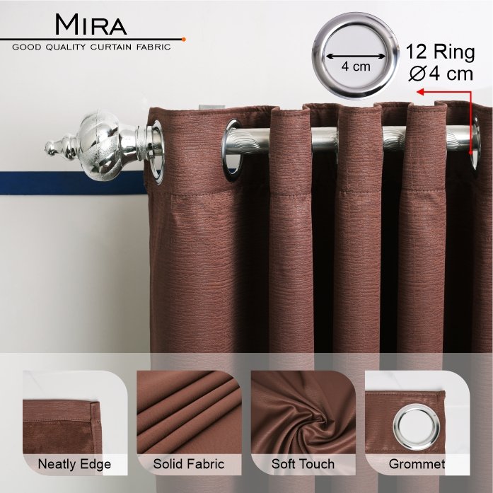 Pemasangan Mudah: Menggunakan sistem Grommet dengan 12 ring silver (diameter 4 cm) yang membuat gorden mudah digeser dan membentuk gelombang yang presisi.