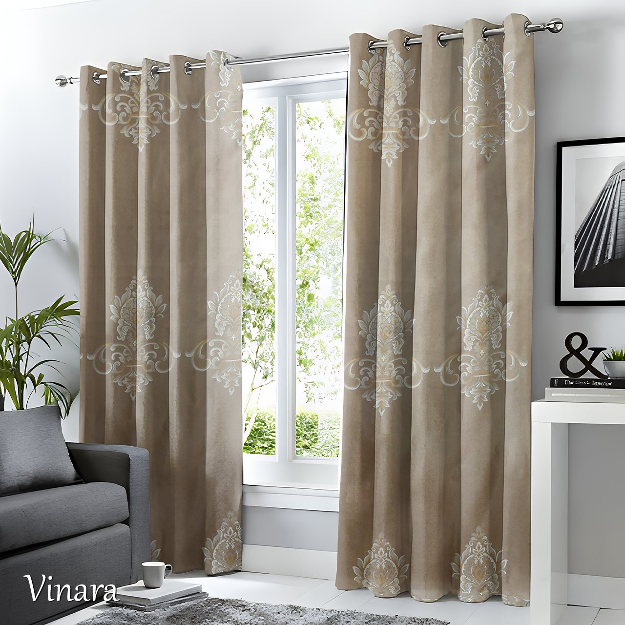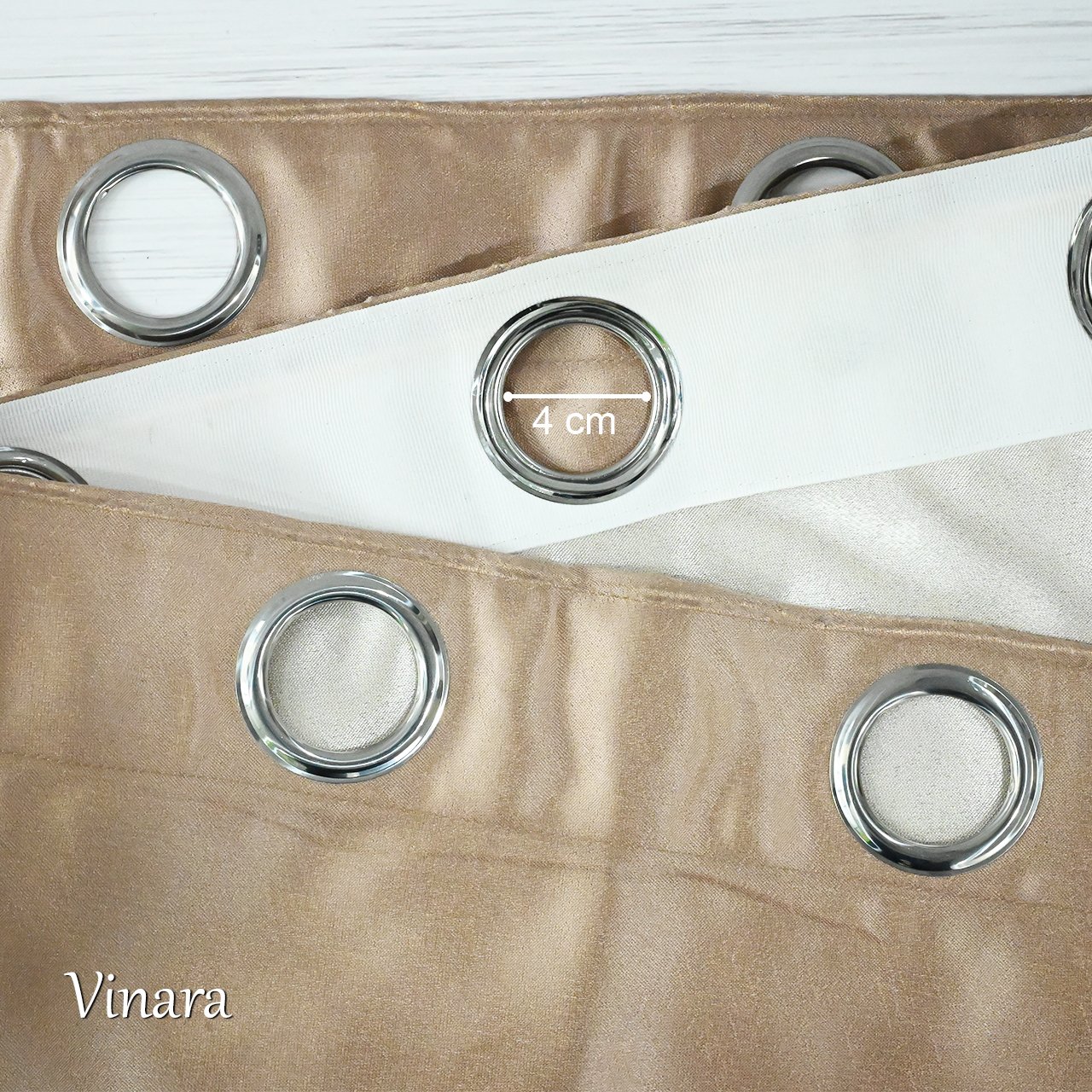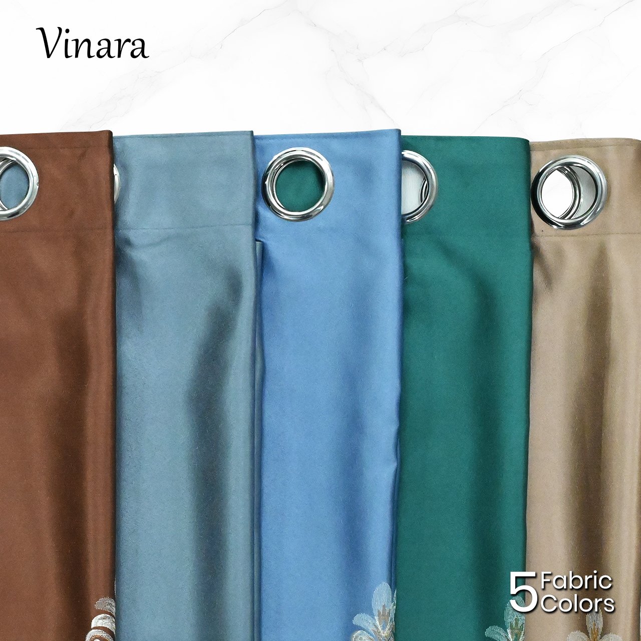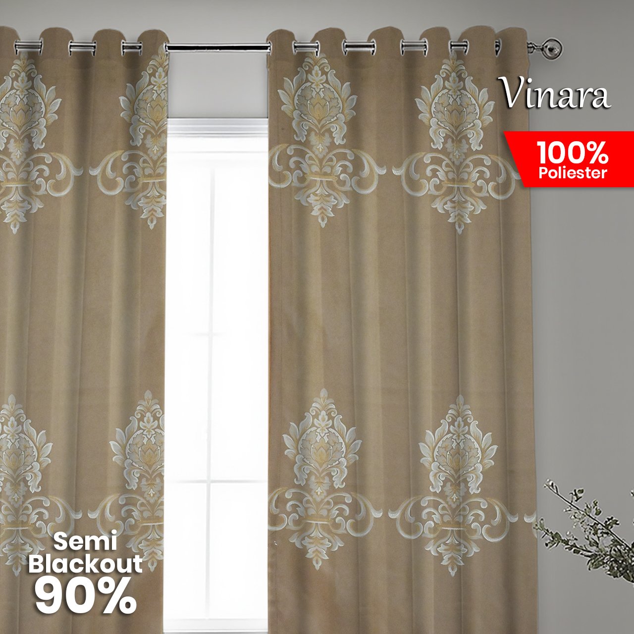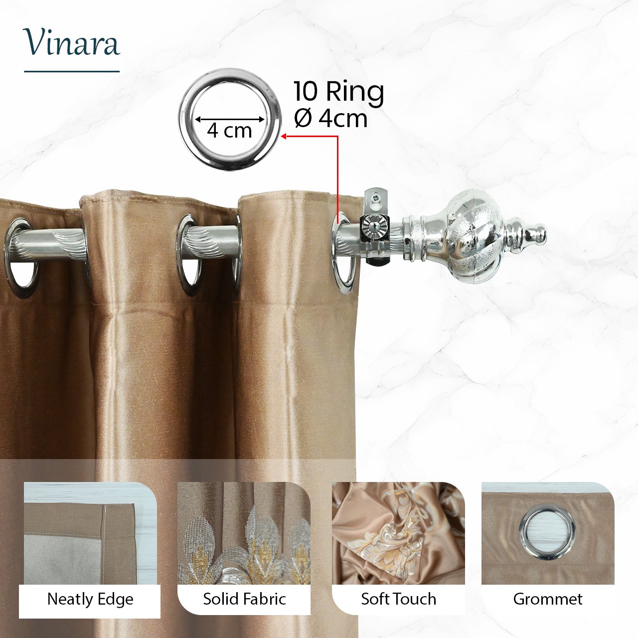 Pemasangan Mudah: Menggunakan sistem Grommet dengan 12 ring silver (diameter 4 cm) yang membuat gorden mudah digeser dan membentuk gelombang yang cantik.