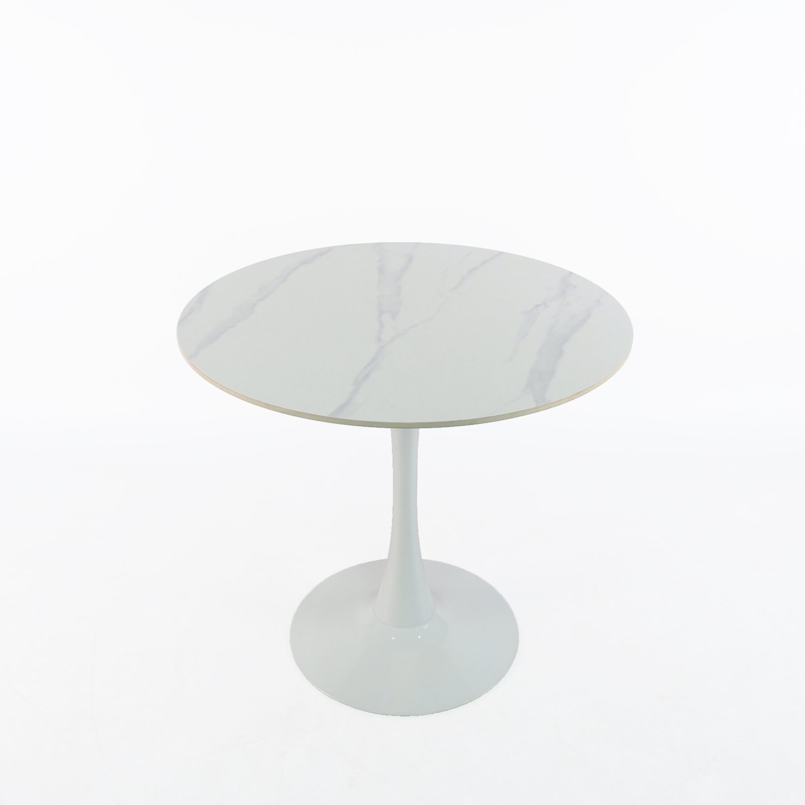 Bentuk permukaannya yang bulat sempurna (diameter 80 cm) menjadikannya meja yang sangat aman karena tidak memiliki sudut tajam, sekaligus sangat fungsional untuk diletakkan di ruang terbatas.