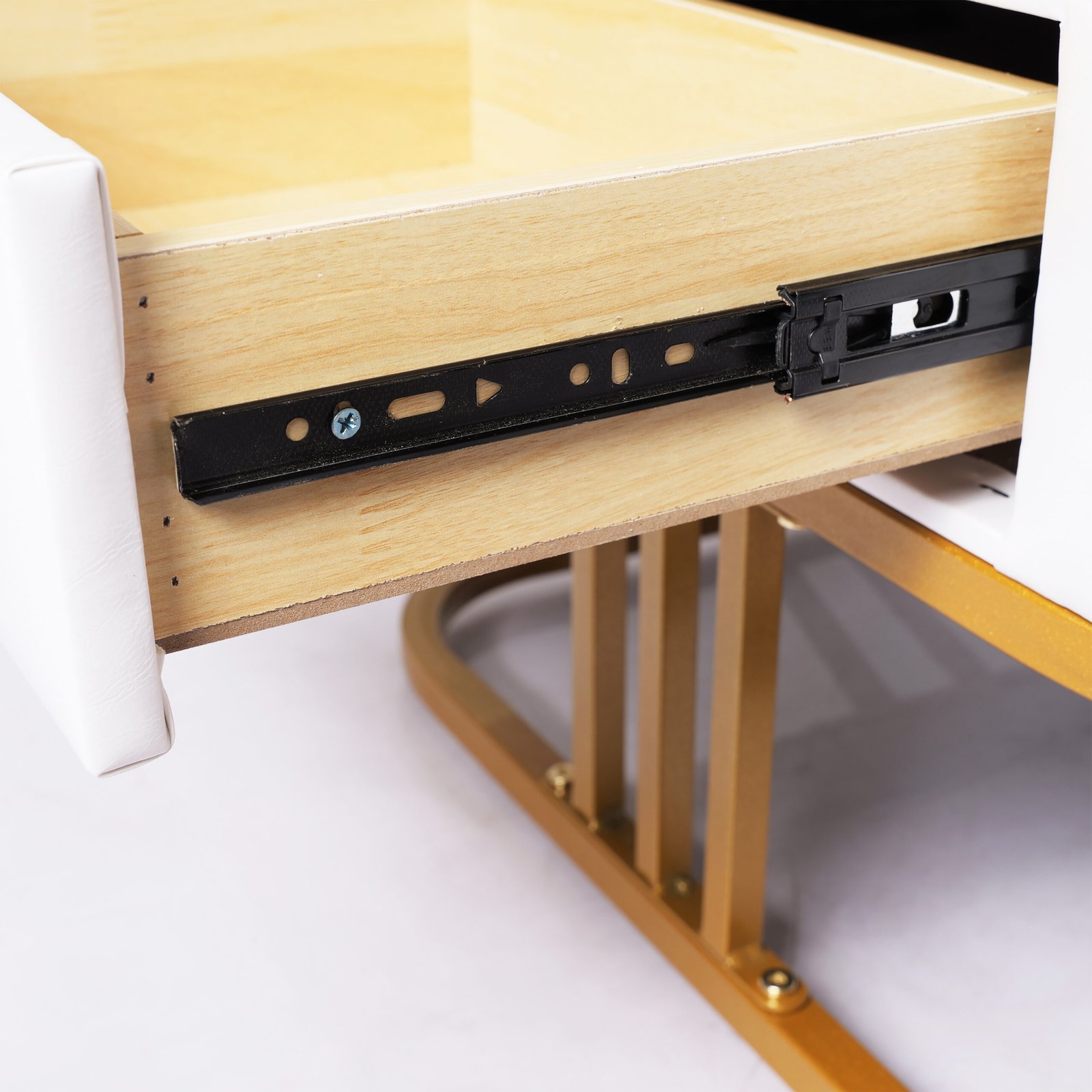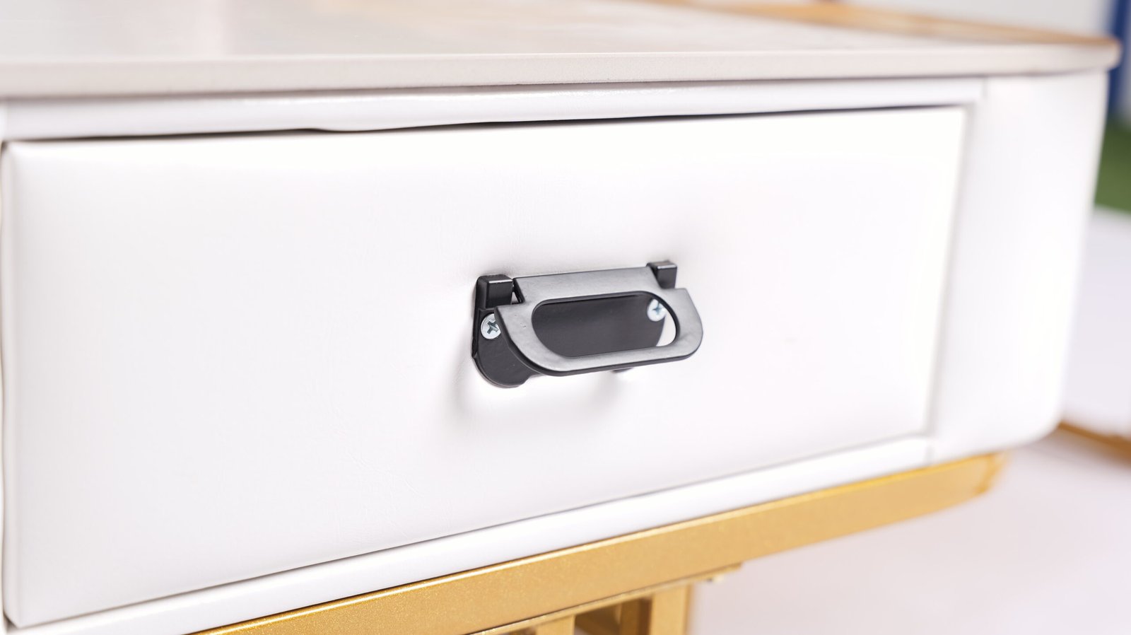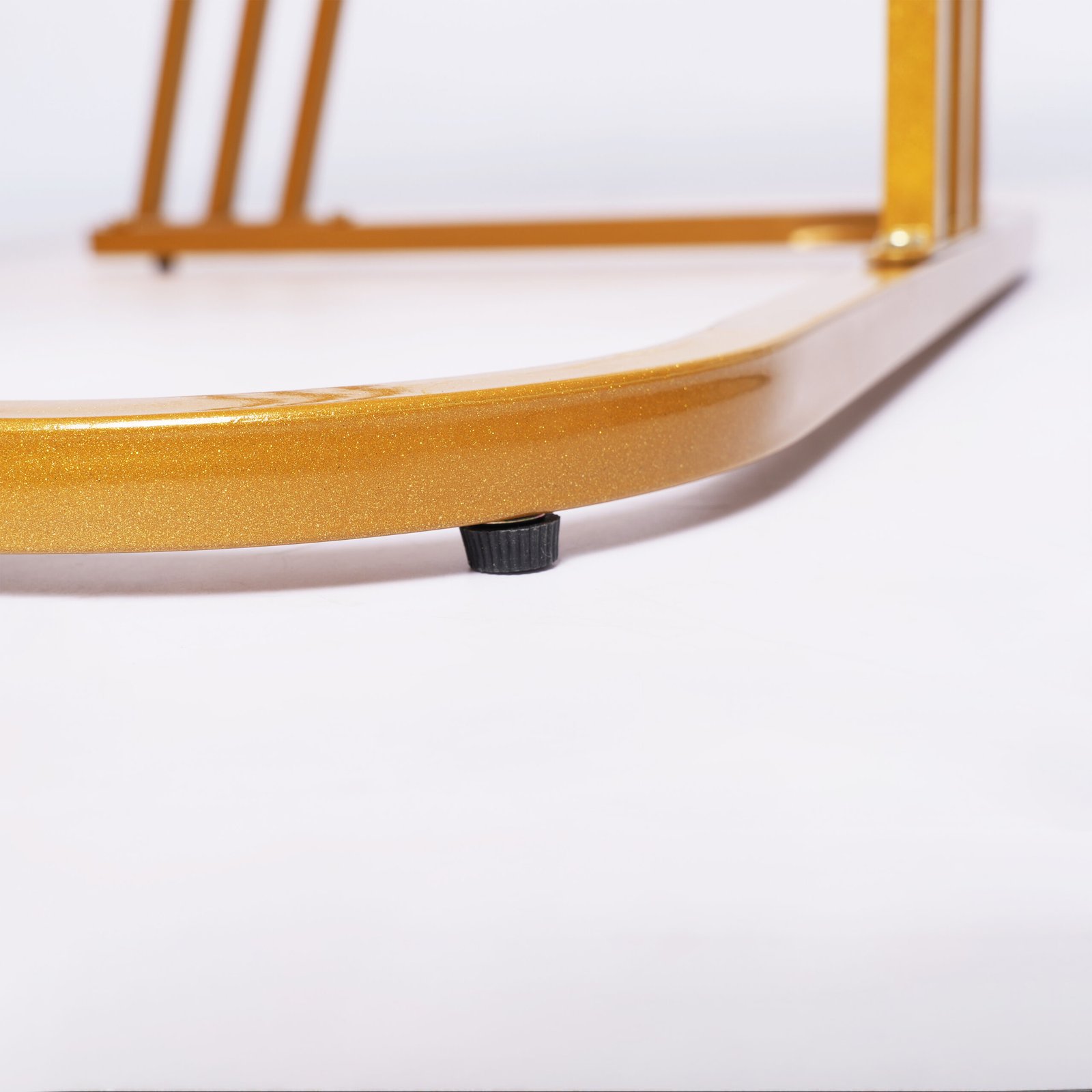 Rangka Gold Anti-Gores: Kaki meja dirancang dengan struktur besi yang stabil dan dilapisi warna emas berkualitas, lengkap dengan bantalan pelindung di bagian bawah agar tidak merusak lantai.