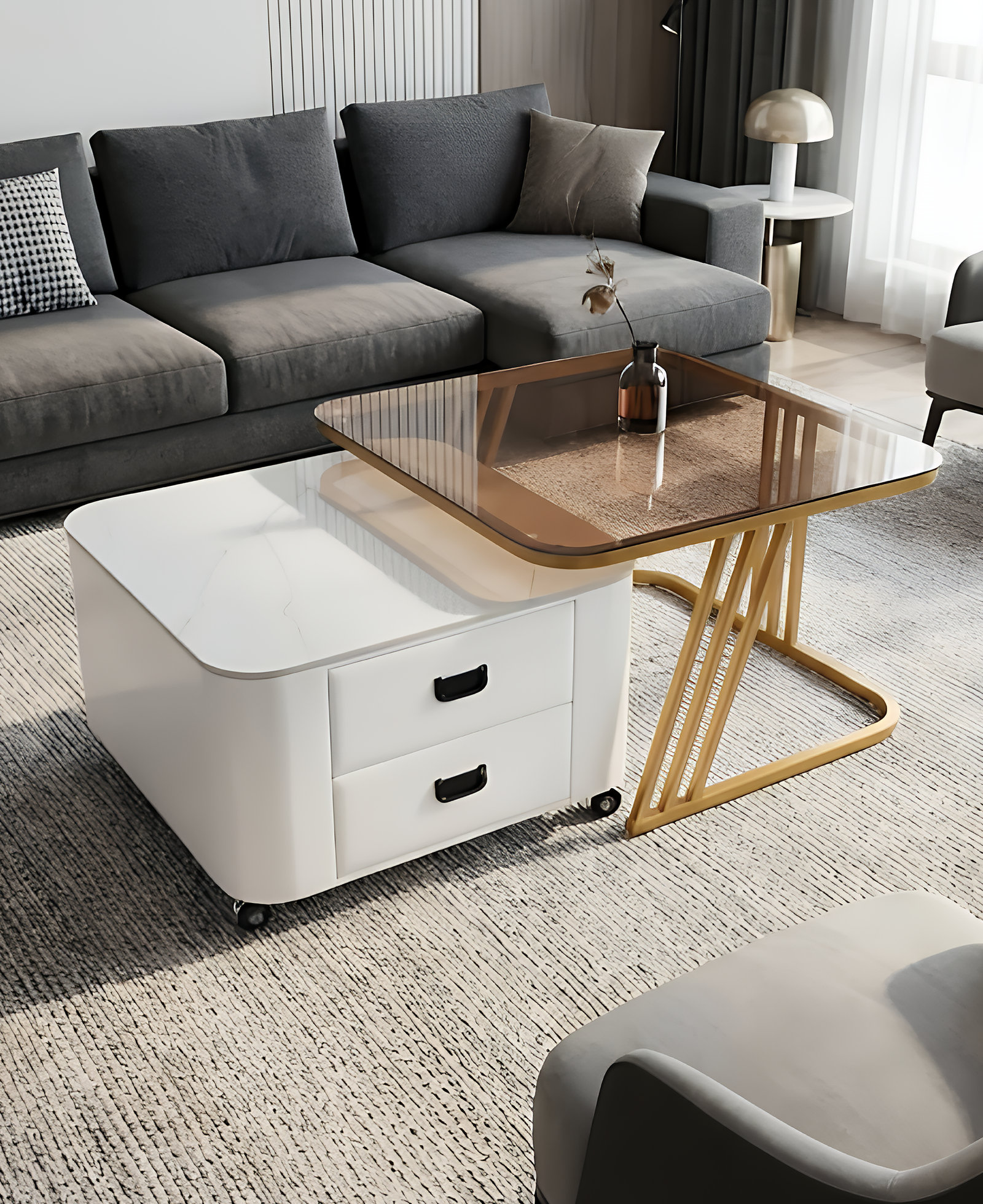 Extra Storage: Memiliki 2 laci penyimpanan luas dengan rel yang halus, ideal untuk menjaga ruang tamu tetap rapi dari barang-barang kecil.