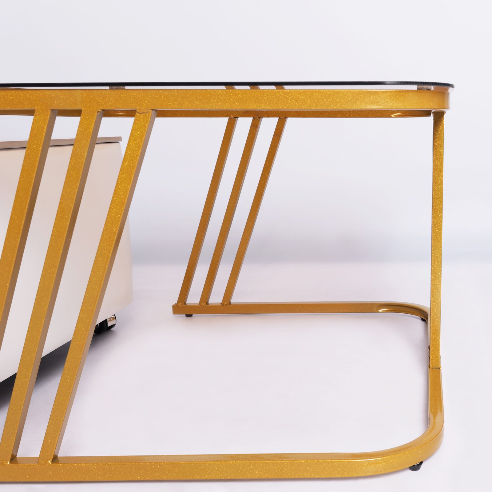 Rangka Gold Kokoh: Struktur kaki besi asimetris berwarna emas yang stabil dan memberikan sentuhan glamor pada interior rumah.