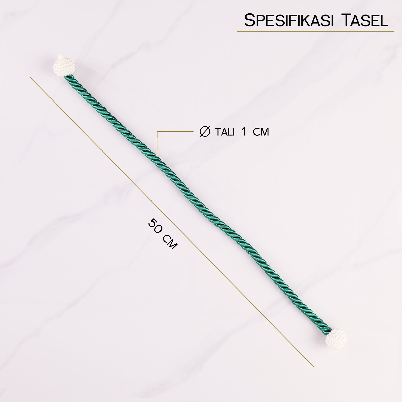 Berbeda dengan tali gorden tradisional, tasel ini menggunakan desain mutiara ganda yang memberikan kesan klasik namun tetap modern.