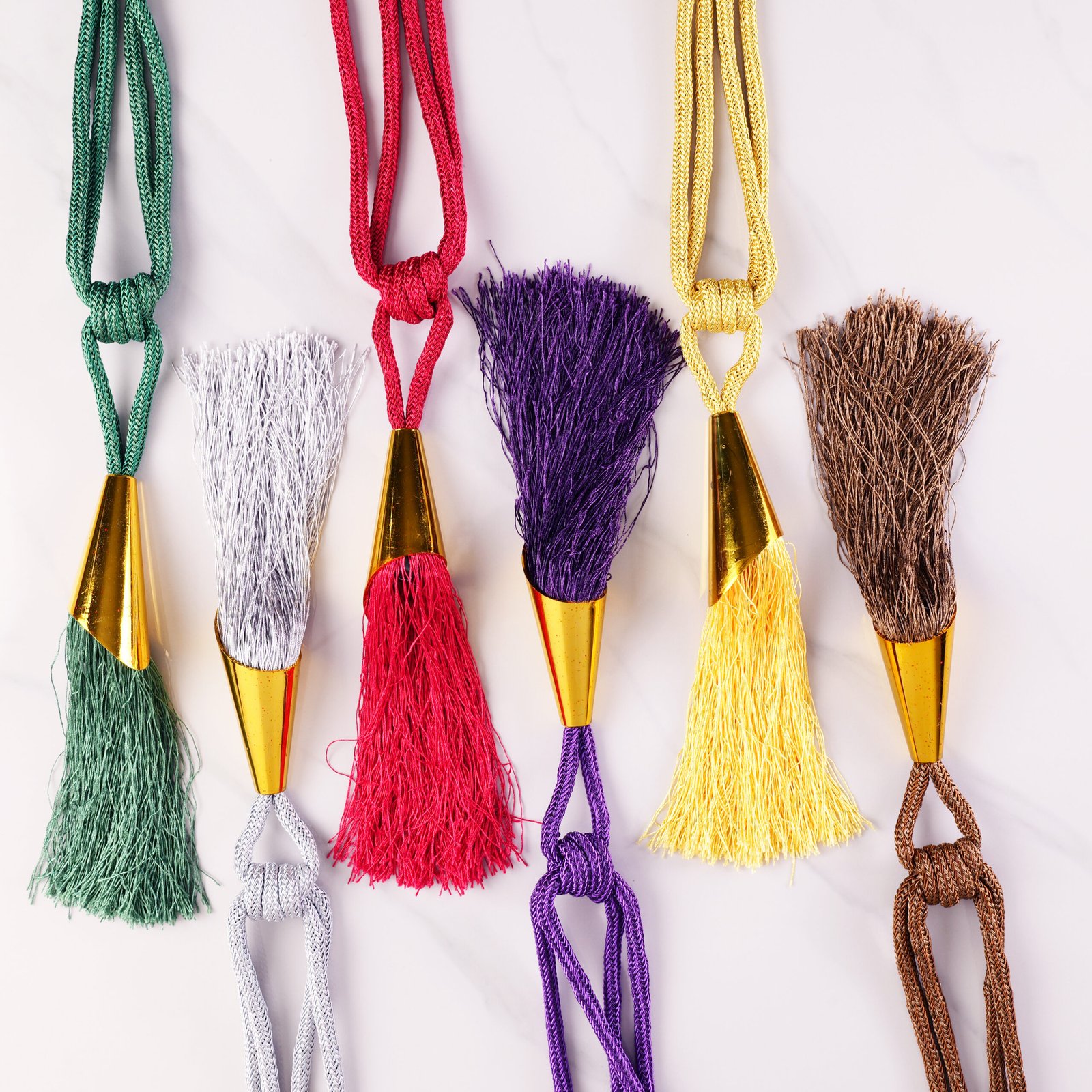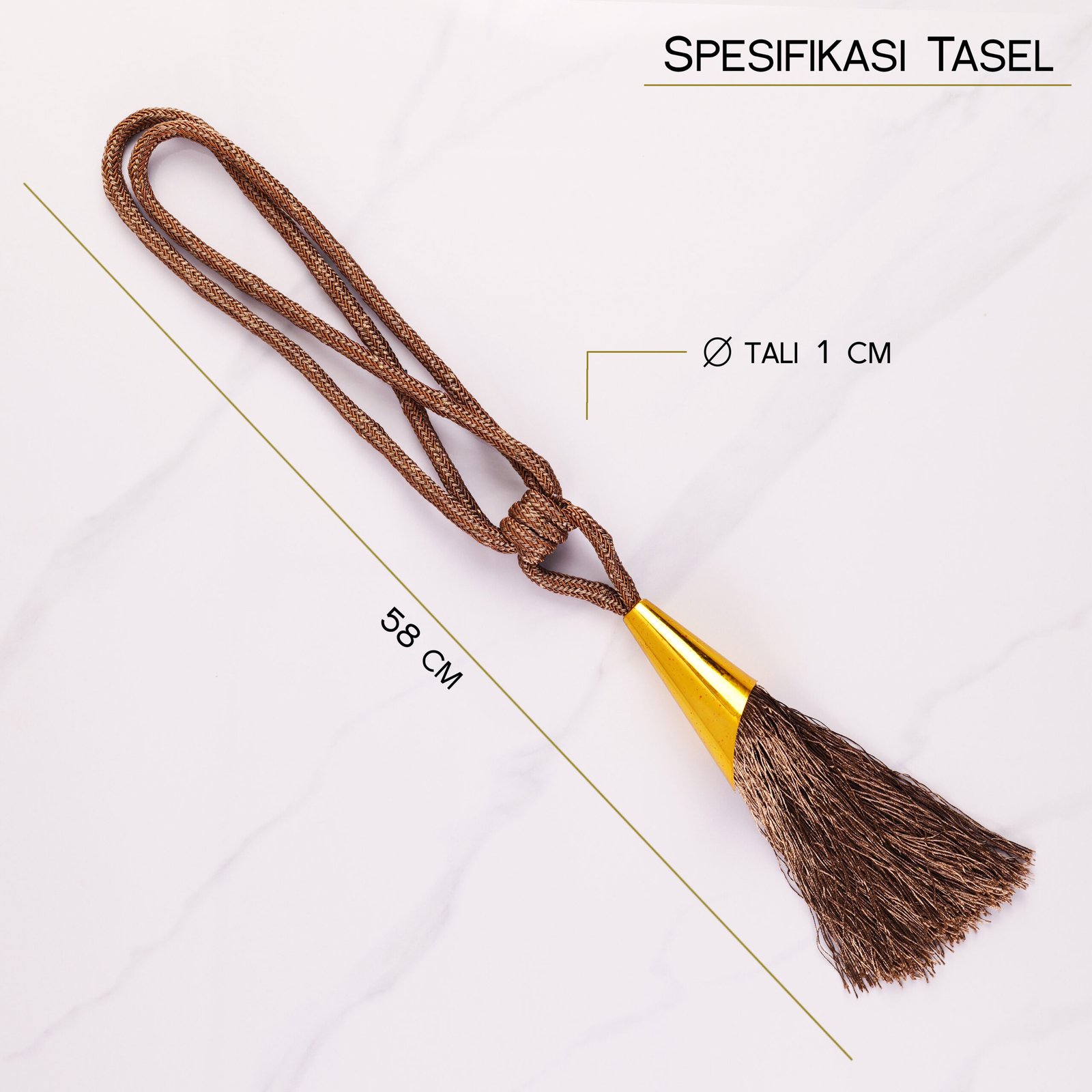 Rumbai Halus & Lebat: Bagian bawah tasel dilengkapi rumbai benang yang lembut dan tidak mudah kusut, menambah kesan dinamis saat tergantung.